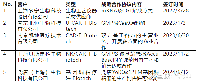 三弟近岸虽然合作的公司类型多,但核心逻辑还是基于其最优势的mRNA解决方案,说明近岸安身立命的还得靠mRNA,重组蛋白/细胞因子确实没大哥和二哥能打。老四同立海源的逻辑则更加简单,总之就是可劲在CGT Biotech/CDMO身上薅,先把需求锁定了再说,这也是其一家就干了13个战略协议的原因。五弟恺佧由于最年轻,早年的产线也很单一,一直到其有了GMP厂房和原料后,才开始大规模进行战略合作,也拿了不少新型GMP工具的商务授权。