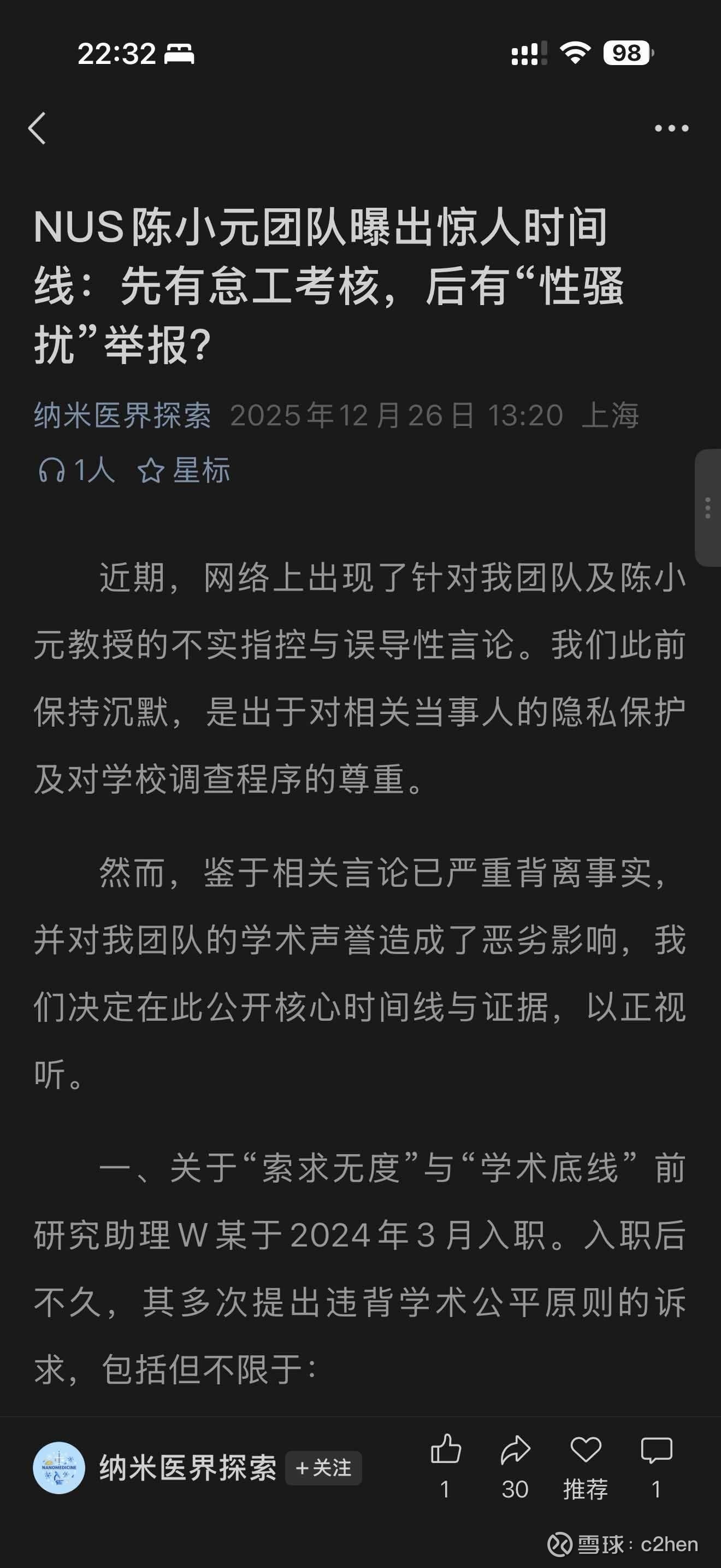近日,新加坡国立大学(下称国大)向媒体证实:欧洲科学院院士、新加坡国家科学院院士、国大教授、知名分子影像和纳米医学专家陈小元,被指涉及性不端行为,随后经校方纪律小组裁定违反行为准则而遭到解雇。陈小元否认了校方所有指控,并表示将提起上诉,希望推翻校方终止他终身教职的决定。