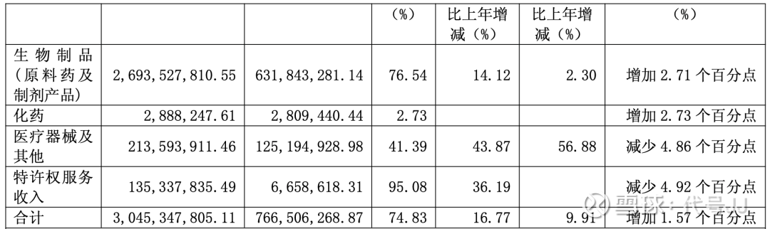 甘李药业主要的产品包括生物制品( 原料药及制剂产品)、化药、医疗器械及其他、特许权服务收入等,尤其是特许权服务收入的毛利率在2024年达到95.08%。