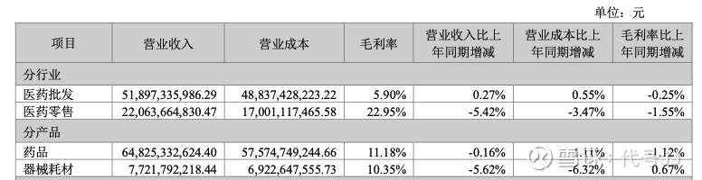 国药一致的主要产品包括药品、器械耗材等,不过药品和器械耗材这两类产品2024年营收均出现同比微降。