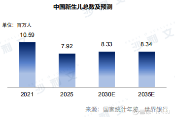 近年来,全球及中国出生人口数量整体呈下降趋势。根据世界银行数据,2021年全球新生儿数量约为1.33亿,2025年降至约1.32亿。