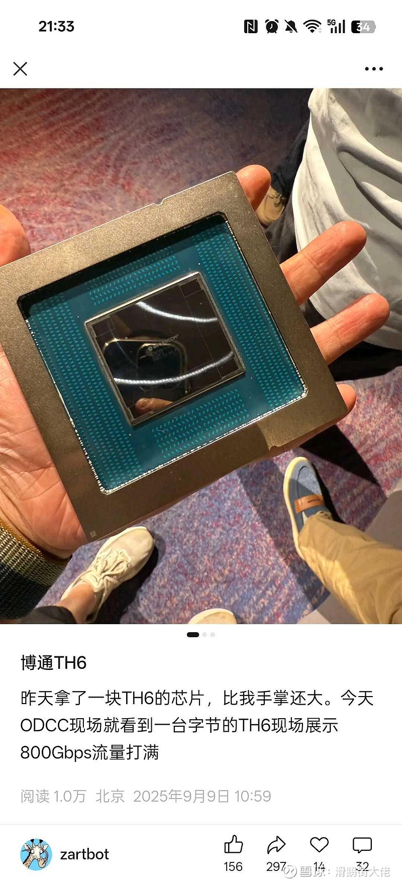 最近在关注先进封装,就是封测厂的业务,也就是芯片制造里的后道,前道就是晶圆厂用光刻机生产芯片,但是只是半成品,就是die。现在各种功能芯片都不是单一一块die,往往都是多块die通过chiplet封装在一个基板上面的大chip,也是从2D-2.5D-3D封装这样发展。封测厂和晶圆厂一样是重资产业务,但是国内几家的PE都才四十五,感觉比晶圆厂现在几百倍PE比还是稍微便宜一点。如图博通最新的102. 8T交换芯片甚至有巴掌这么大了,靠的不仅仅是最先进制程,先进封装也很重要,CPO也是通过先进封装把交换芯片和其他芯片封装在一起,从而降低功耗提高性能。
