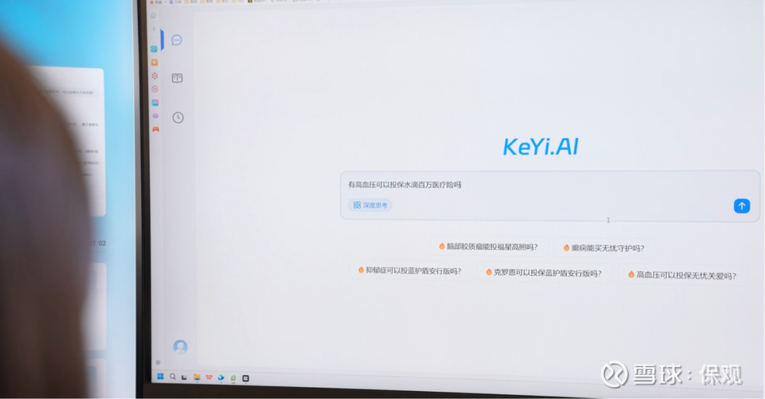 在落地层面,大部分险企已经接入DeepSeek,用于客服、风控和业务辅助等场景;同时,行业也迎来一些标志性AI应用。近日,水滴公司推出行业首个AI保险核保专家“KEYI.AI”,不同于传统依赖人工审核的模式,KEYI基于大模型能力,快速处理健康告知、智能匹配核保规则,并给出更精准的风险评估。