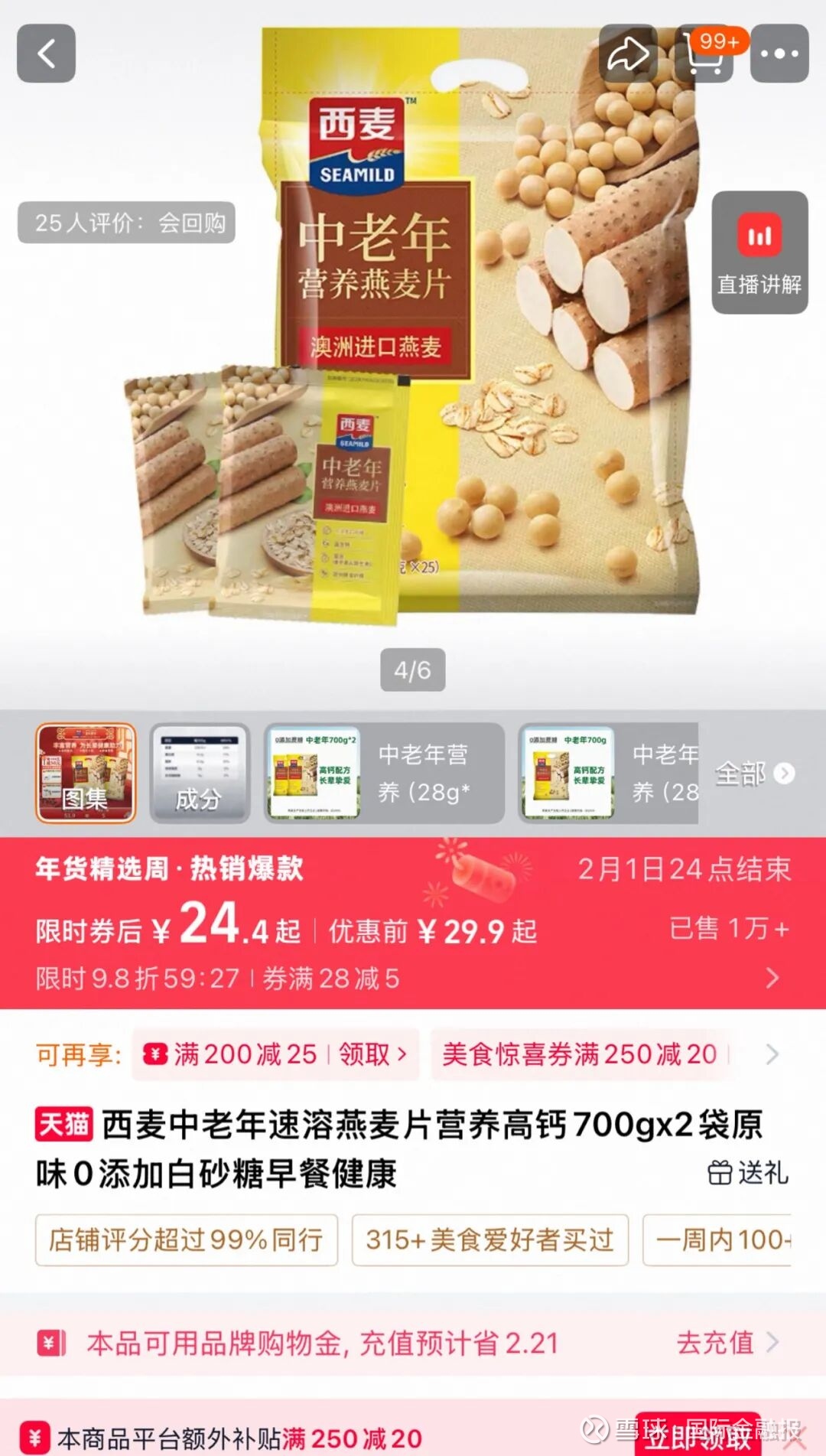 淘宝旗舰店内,涉事款中老年营养燕麦片链接已售出1万多单。