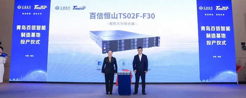 在活动现场,青岛百信分别与5家金融机构签约,授信金额共13亿元;与国信集团、伟仕佳杰、金山云等10家企业签约,拟进一步加强信创产业领域的共建合作。此外,现场还发布基地生产的首台服务器百信恒山TS02F-F30,该服务器由山西百信研发,是一款基于华为鲲鹏920处理器的数据中心服务器。