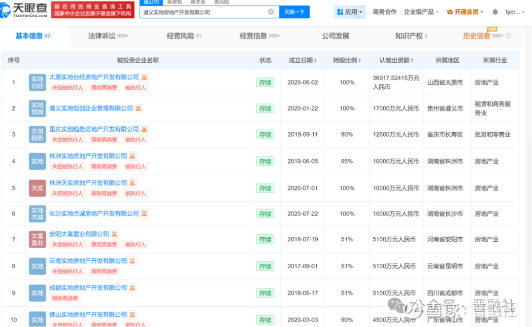 而遵义实地旗下公司,目前大多具备一定经营风险,为失信被执行人,被限制高消费。