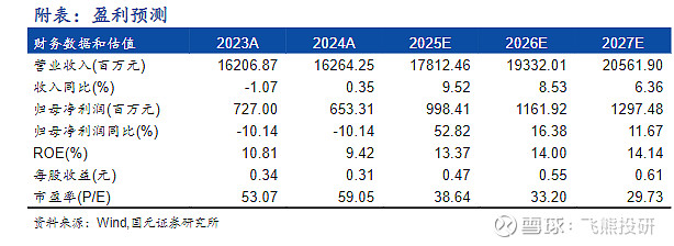 国元证券:预计公司2025-2027年营收分别为178.12/193.32/205.62亿元,归母净利润分别为9.98/11.62/12.97亿元,对应EPS为0.47/0.55/0.61元/股,对应PE估值分别为39/33/30倍