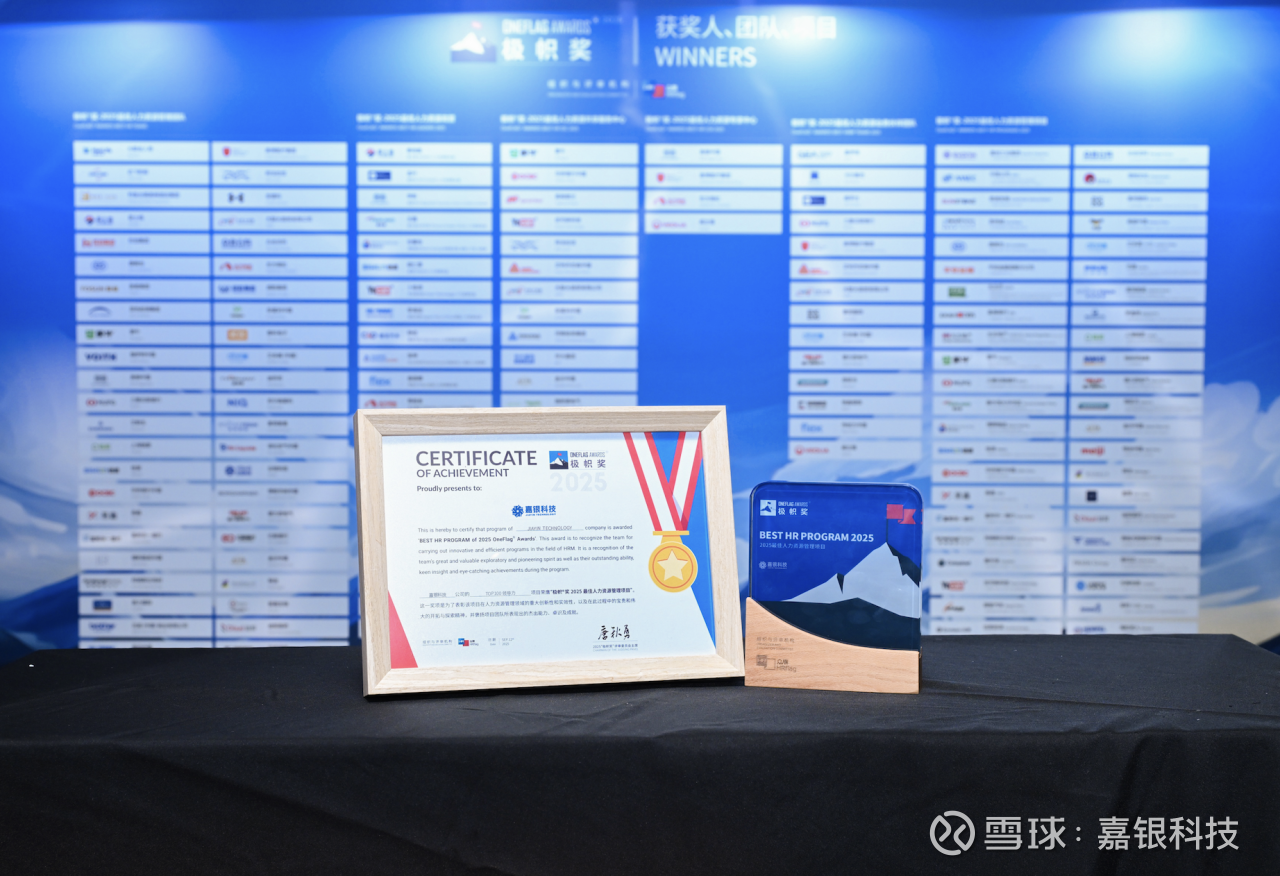 近日,由中国领先的研究和技术服务公司HRflag组织与评审的中国人力资源管理高管、团队、项目旗帜性奖项 - 2025“极帜奖”(OneFLAG® AWARDS)颁奖典礼在上海隆重举行!嘉银科技$嘉银科技(JFIN)$ 凭借卓越的人力资源管理实践,从来自18+国家/地区的2053项申报中脱颖而出,与蒙牛、中微公司、华侨银行中国、施耐德电气等优秀企业一同成功夺得【最佳人力资源管理项目】大奖!