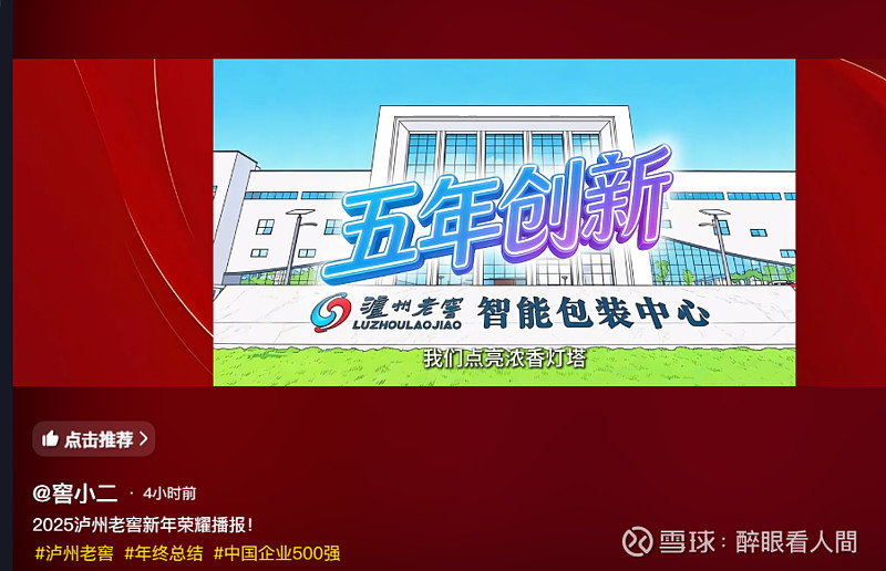 $泸州老窖(SZ000568)$ 6.92 PKj:/ R@k.cA 03/17 2025泸州老窖新年荣耀播报! # 泸州老窖 # 年终总结 # 中国企业500强 网页链接 复制此链接,打开Dou音搜索,直接观看视频!