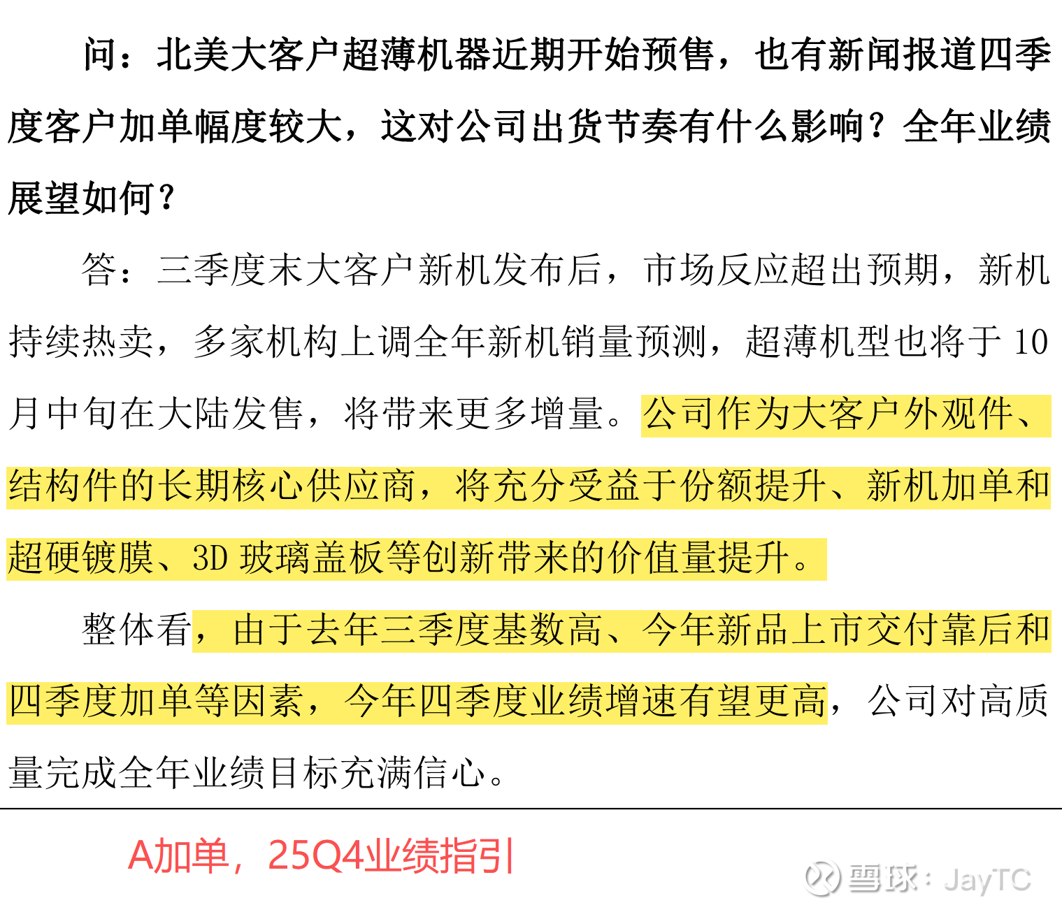 25Q3受益大客户新机料号ASP和份额提升,营收&利润均实现同比增长,但客户拉货节奏较去年有所延后,部分增量平移至25Q4,叠加大客户新机发售后有所加单,25Q4业绩有望实现环比增长,全年利润预期不变。(PS:公司10.28电话会议)