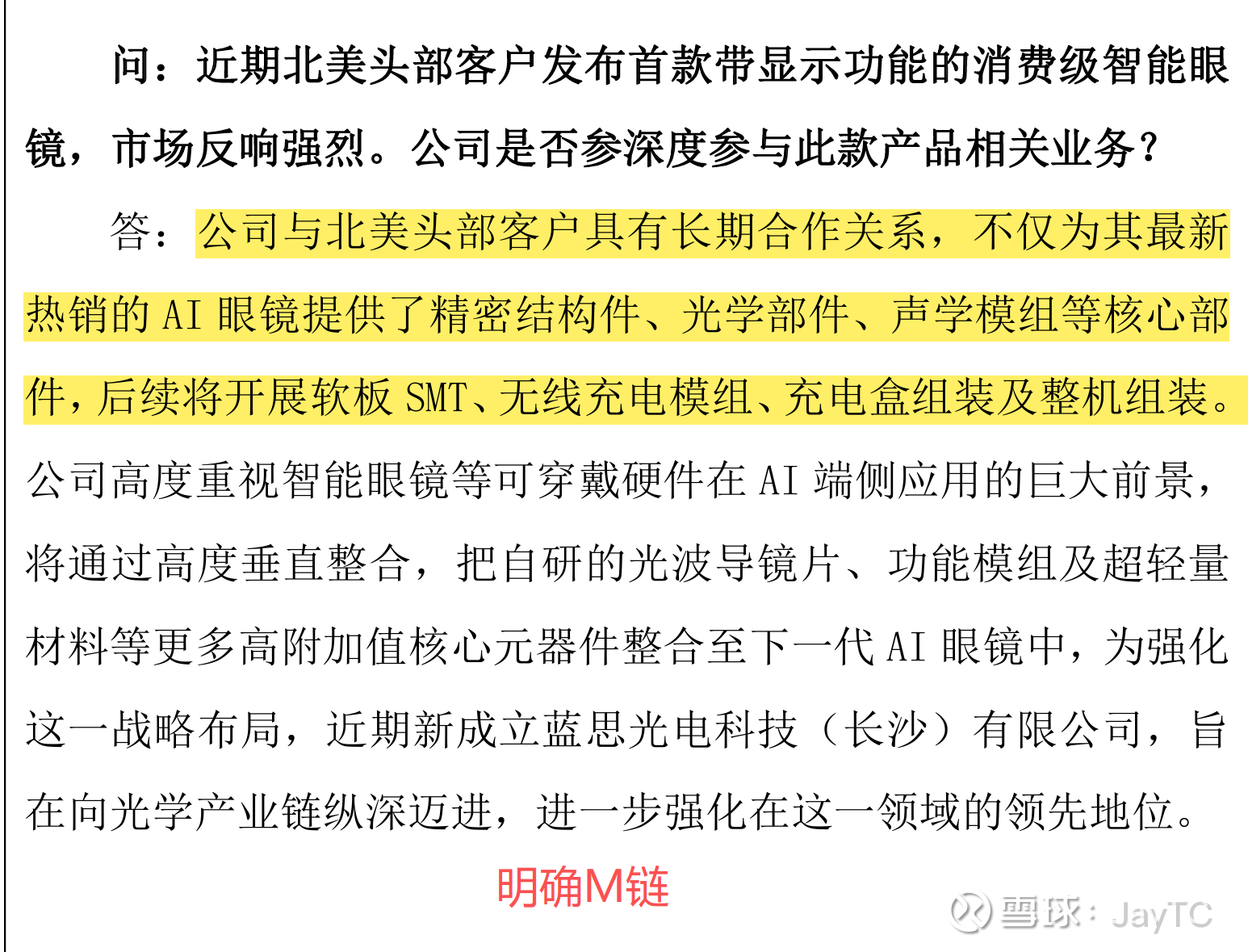 ➠ XR:已实现国内R客户AR整机量产交付(26年量产光波导),此外有望进入北美客户眼镜整机组装供应链