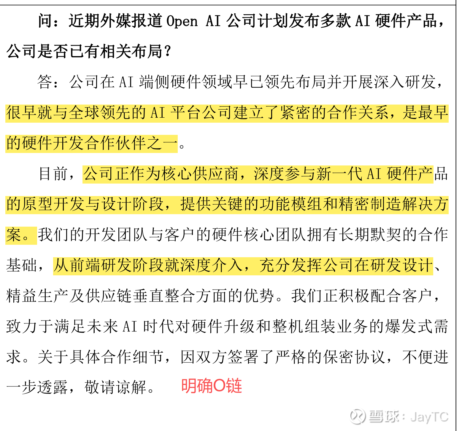 公司明年的折叠机型项目,实际开发工作自去年便已启动,目前已完成产品全部定型及相关设备的开发与准备工作,目前进展顺利。在核心供应方面,公司已确定将成为大客户明年折叠机的三项关键产品供应商,具体包括 UTG(超薄柔性玻璃)盖板、PET贴膜,以及玻璃支撑板。在结构件领域,公司为折叠机液态金属铰链主轴的核心供应商。 除屏幕相关部件外,公司还将提供玻璃前盖与 3D 玻璃后盖3D 玻璃后盖的价值量较普通后盖有大幅提升。