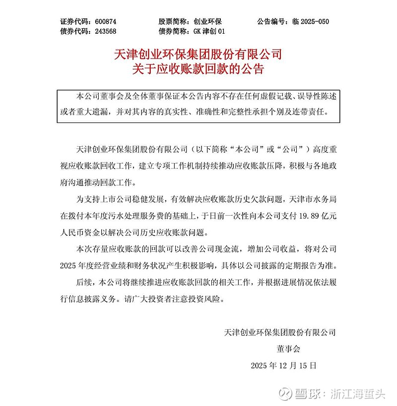 公告应收账款回款近20亿人民币