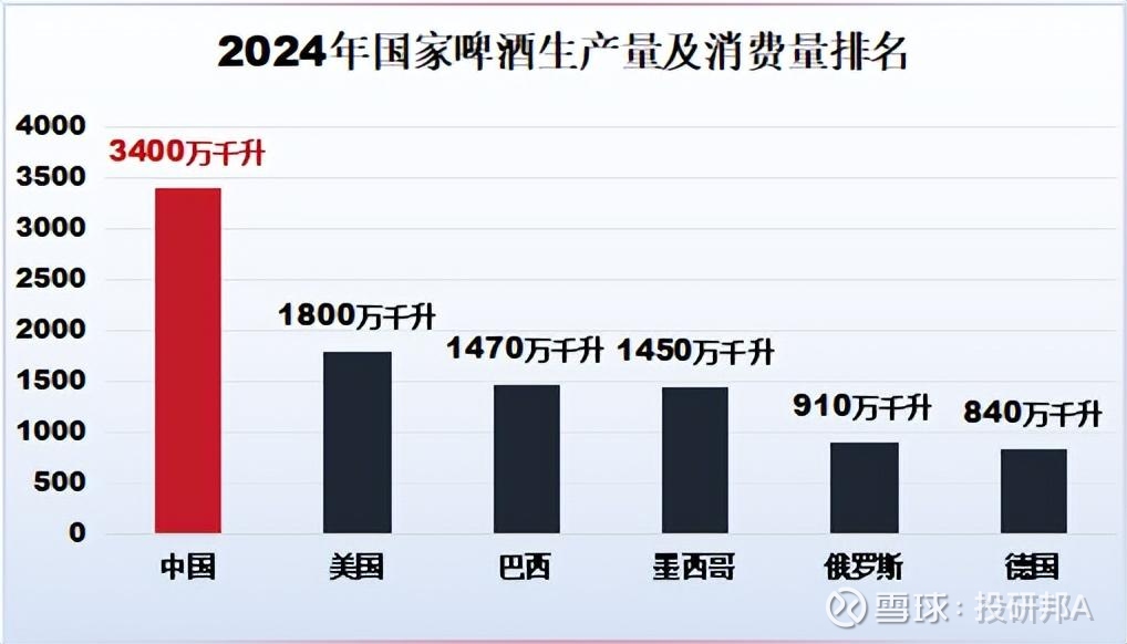 中国也因此连续多年保持世界第一大啤酒国的地位,2024年我国啤酒生产量约为3400万千升,是全球最大的啤酒市场,市场规模达到了1700亿元左右。