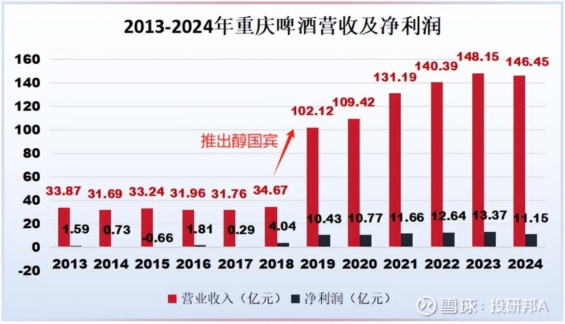到了2019年,重庆啤酒推出了中高档本土品牌“醇国宾”,正好踩中了消费者对本土口味和高端啤酒的需要,于是当年公司营收直接突破了100亿元,解决了业绩困局。