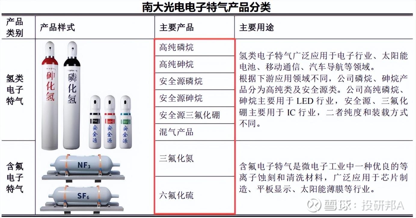 南大光电的产品主要集中于技术门槛和开发难度最高的磷烷、砷烷系列,另外还重点布局了三氟化氮、六氟化硫等市场份额占比较高的品类。