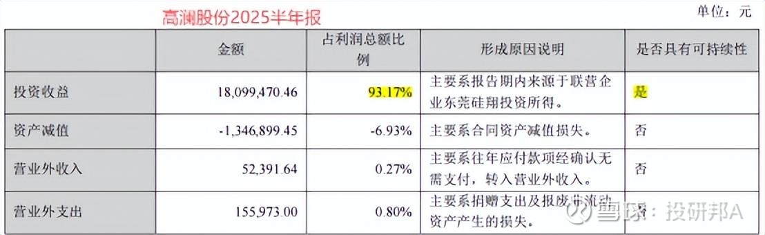 值得注意的是,高澜股份今年上半年的利润中有93.17%是来自非主营业务投资收益的,但这预期并不会对公司业绩持续性造成较大影响。