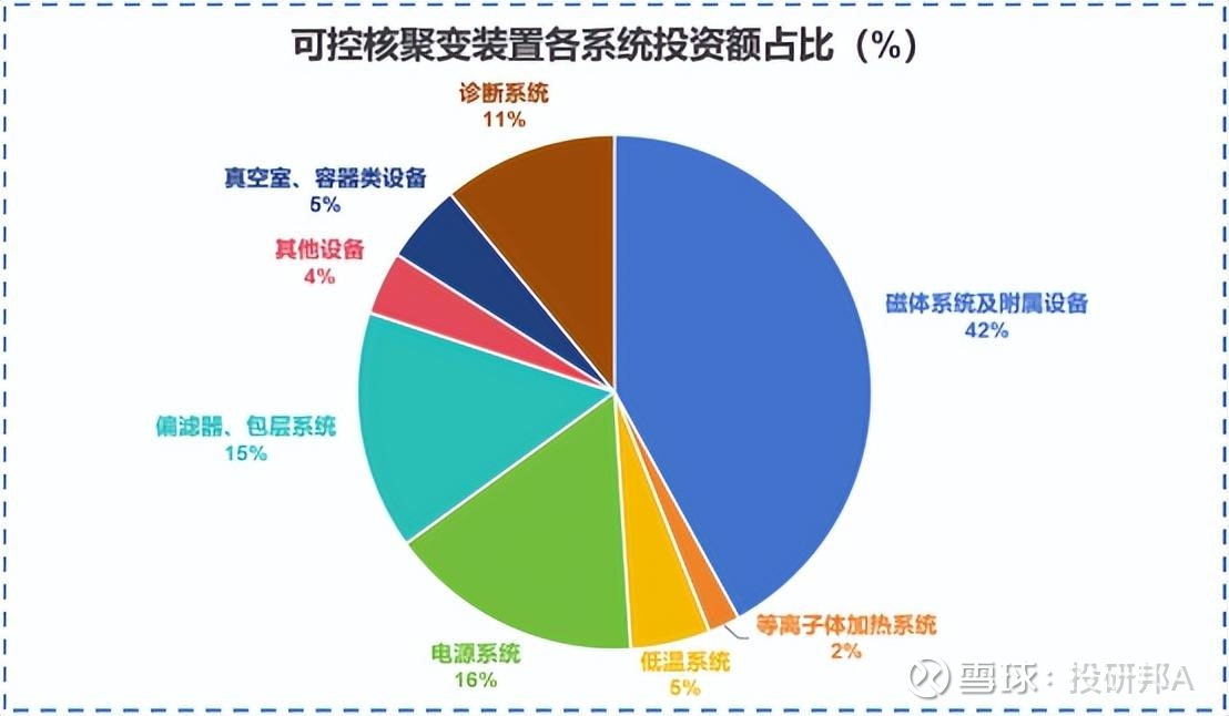 当核反应堆正式商业化运行时,维持稳定平衡的系统价值量占比最高,为25%。其次就是低温装置和冷却水系统,占比高达16%左右,这是一个隐形的千亿级赛道。