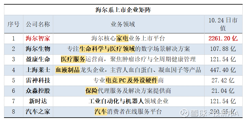 截至2025年10月24日,“海尔系”共有8家上市企业,覆盖家电、大健康、电竞外设、工业互联网、汽车五大领域,合计市值金额达到了3368.57亿元。