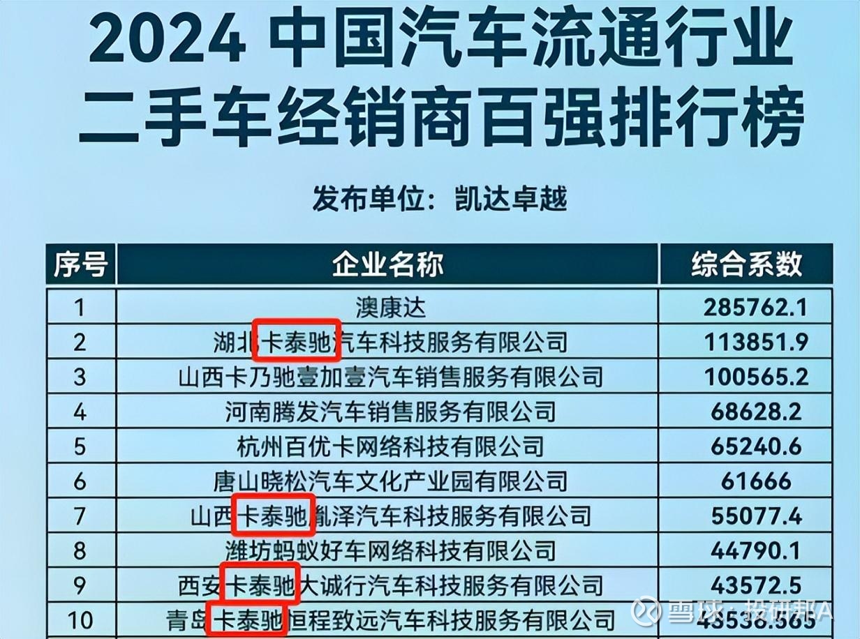 在2024年中国二手车经销商百强榜中,卡泰驰旗下的区域公司,共有4家进入了前十名中。