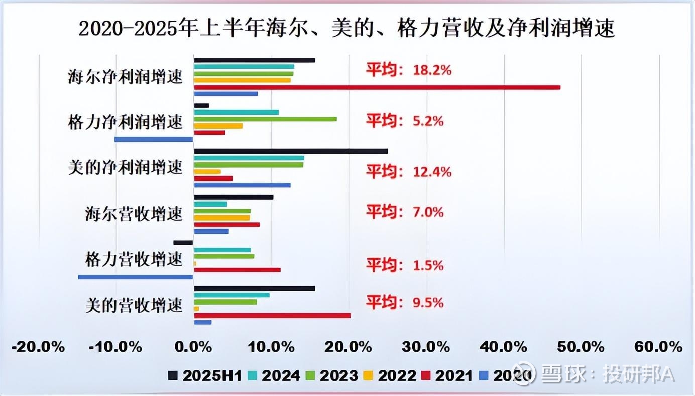 而老大哥美的集团,报表中即使有新能源、机器人与自动化等新业务,其2020年至2025年上半年的平均净利润增速也不过只有12.4%,远低于海尔智家的18.2%。