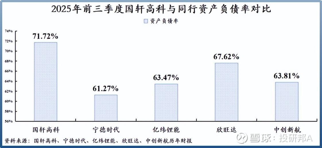 其中国轩高科的冲锋,尤为激烈。截至2025年前三季度,国轩高科的资产负债率已经高达71.72%,远超亿纬锂能(63.47%)、中创新航(63.81%)等同行。