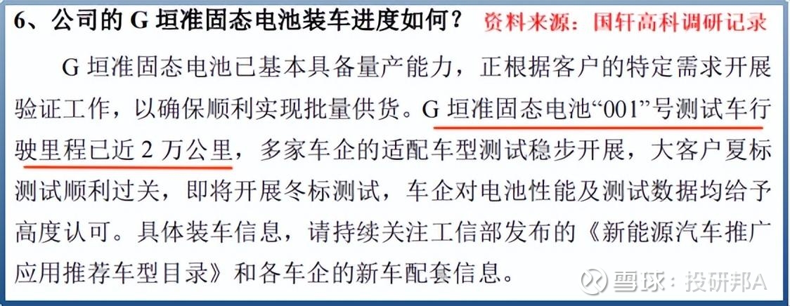 截至2025年10月,G垣准固态电池“001”号测试车行驶里程已近2万公里,多家客户夏标测试顺利过关,即将开展冬标测试。