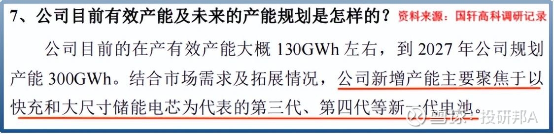 紧接着10月,公司在接受调研时表示,其目前有效产能大约130GWh左右,到2027年规划产能为300GWh。其中,新建产能主要是以快充和大尺寸储能电芯为代表的第三代、第四代等新一代电池。