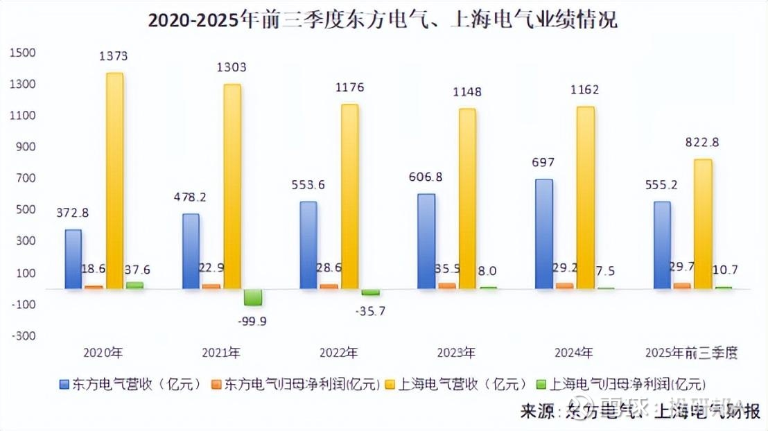 东方电气、上海电气、哈尔滨电气几乎瓜分了全部市场。2025年已披露数据显示,东方电气手握885.83亿的新增订单,上海电气也有1098亿订单。