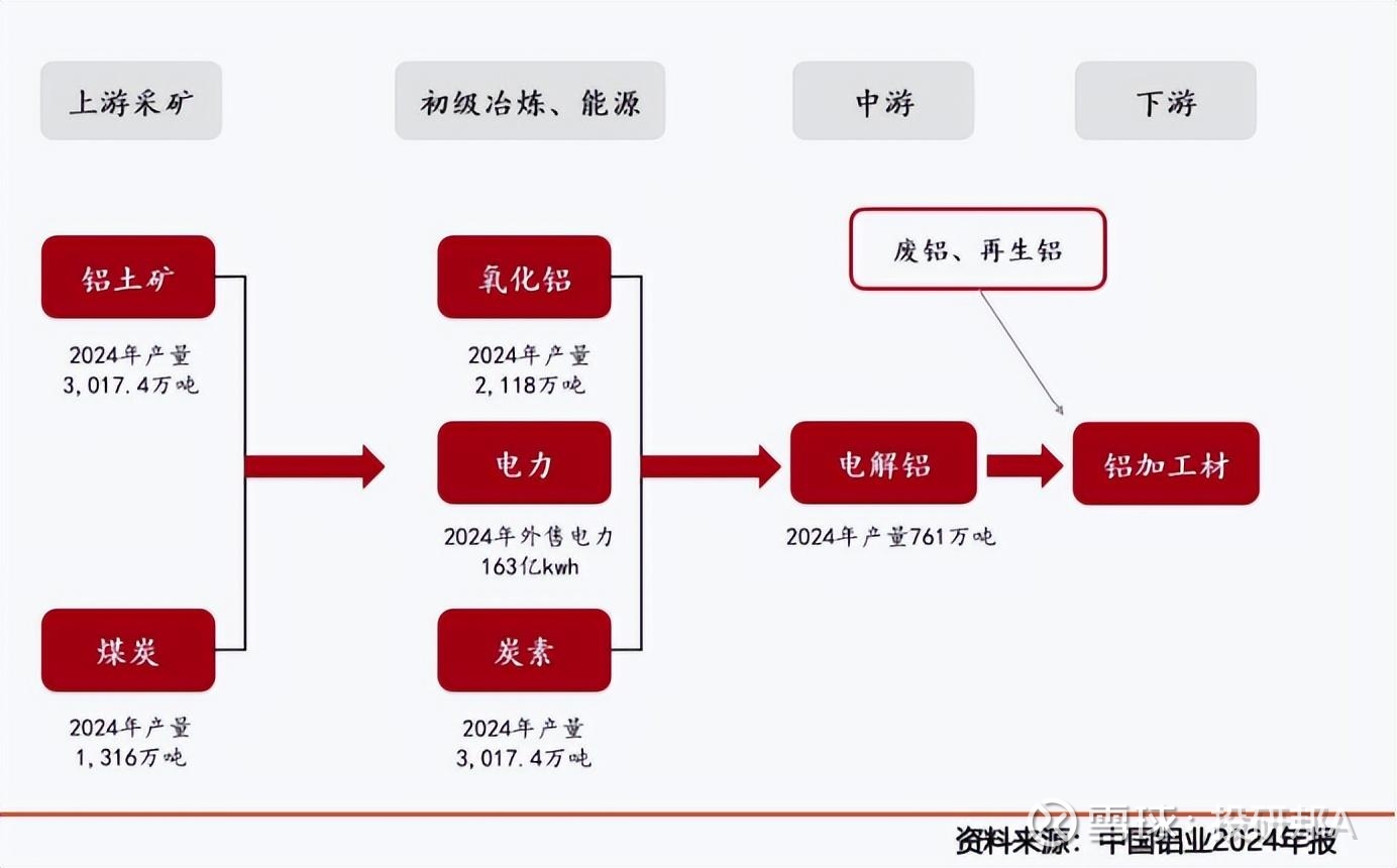 截至2024年底,中国铝业全球铝土矿资源量达27亿吨,2024年产量3017.4万吨,自给率超70%,远超国内平均水平。