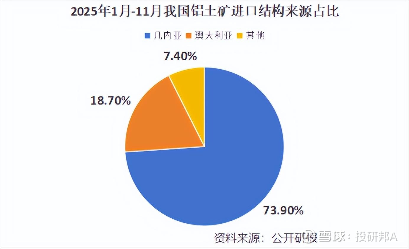 出现此种进口结构并不意外,在全球铝土矿版图中,几内亚是无可争议的核心产区,拥有全球最大的铝土矿储量,约74亿吨,占比超25%。
