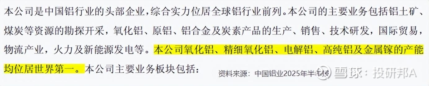 常言道,打铁还需自身硬。中国铝业,市场地位超然。在2025半年报中,公司曾披露,其氧化铝、精细氧化铝、电解铝、高纯铝及金属镓产品产能均位居世界第一。