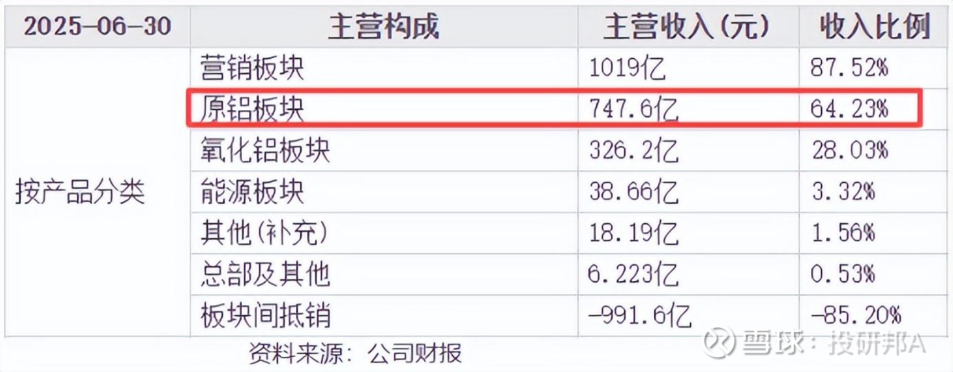 这对中国铝业而言当然是好事,因为电解铝正是其拿手好戏。数据显示,2025上半年,公司原铝板块(即电解铝业务)营收747.6亿,远超氧化铝、能源等,是绝对的核心。