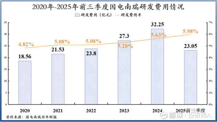 2020-2024年,公司研发费用从18.56亿元持续增加到32.25亿元,研发费用率也从4.82%稳步增长到5.63%,2025年前三季度更是进一步上升到5.98%。