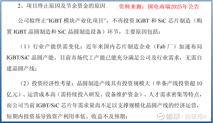 2025年底,国电南瑞公告终止“IGBT模块产业化项目”,转而将项目部分结余资金用于投资新项目。