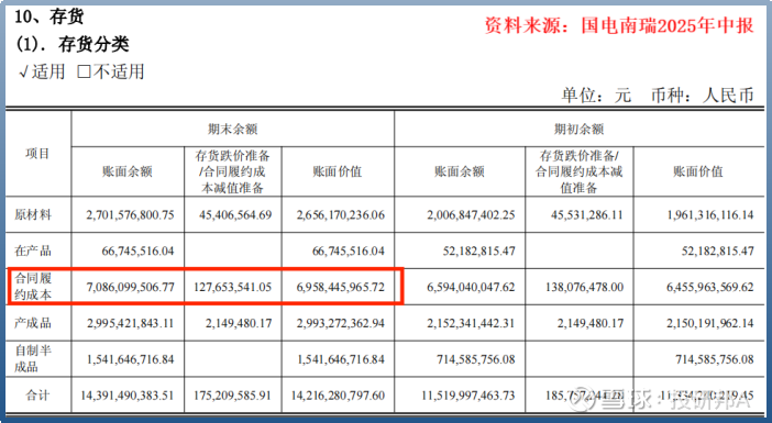 前者可看一个会计科目——合同履约成本。截至2025年6月底,国电南瑞合同履约成本高达69.58亿元,占存货的比重接近50%。