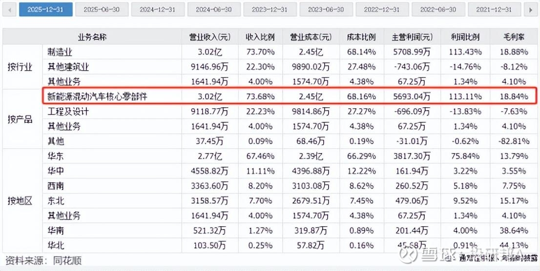 只不过这部分业务暂时还未放量,规模较小,最终导致新能源混动汽车核心零部件业务2025年实际只贡献了0.57亿元的毛利润。