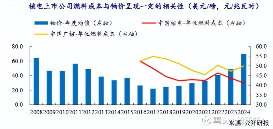 数据显示,2022-2024年,中国核电的单位燃料成本不断降低,从约46元/兆瓦时降至约40元/兆瓦时。