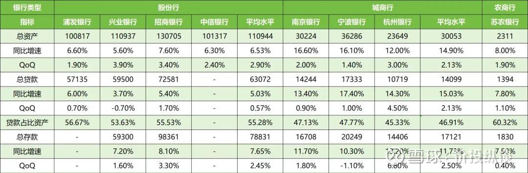 资产结构方面,股份行贷款增速普遍略低于资产增速,说明全国范围内的有效贷款需求仍未恢复,全国性银行需要通过其他资产投资来支撑规模增长。城商行则贷款增速略高于资产增速,主要是这几家城商行都是经济发达区域地方银行,当地信贷需求仍然旺盛。