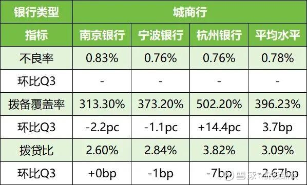 城商行拨备覆盖率平均水平为396.23%,其中杭州银行最高达到502.2%,具有较好的风险抵御能力。