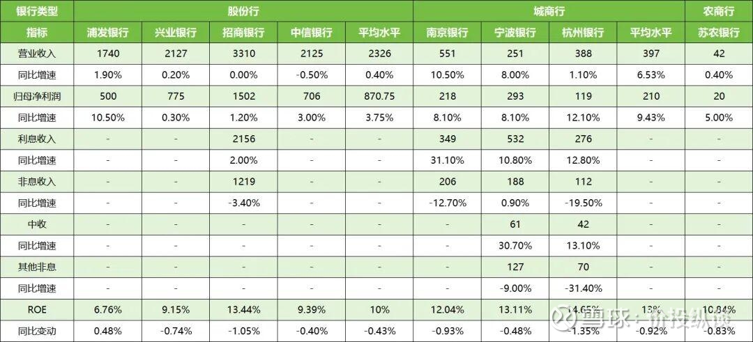 只有招行快报公布了利息收入情况,同比增速均只有2%。作为股份行老大哥,招行反映了股份行尤其是零售股份行面临的经营压力。一方面是全社会融资需求下降,最重要的是个人客户减少借贷需求,使得资产规模增长速度较慢。另一方面,连续多年的LPR下调,导致银行净息差持续收窄。二者共同导致了银行利息收入仅能维持低速增长。
