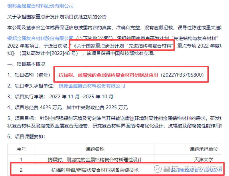 目前,银邦股份和$天力复合(BJ920576)$ 在抗辐射和散热板方面,均有突破!银邦股份因为主业为新能源散热板,因此无论技术积淀还是交付能力,都更强。研发方面,公司和中科院很早就展开太空抗辐射散热金属研究!