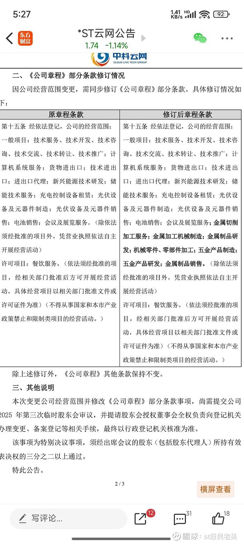 如果老吴预测对的话,在今年最后的两个多月,必将还有保壳措施来,而云网要保壳的话,需从最近一个会计年度扣除非经常性损益前后的净利润为正值,或扣非后虽为负,需要营业收入大于3亿元,且审议意见为标准无保留,最近一年期末净资产为正值等条件。