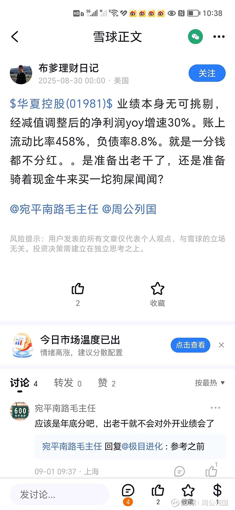 看来“刘志雄”先生不辞职,“华夏控股”很难再上六港币了!记得当时“刘志雄”刚入职“华夏控股”的时候,股价在六港币左右。从前,以为是助力“华夏控股”发展的王者,四年多过去了,才让人认识到,他不但不是助力公司“志雄”,反而让公司成为“至熊”。可以说把投资者们害惨了!