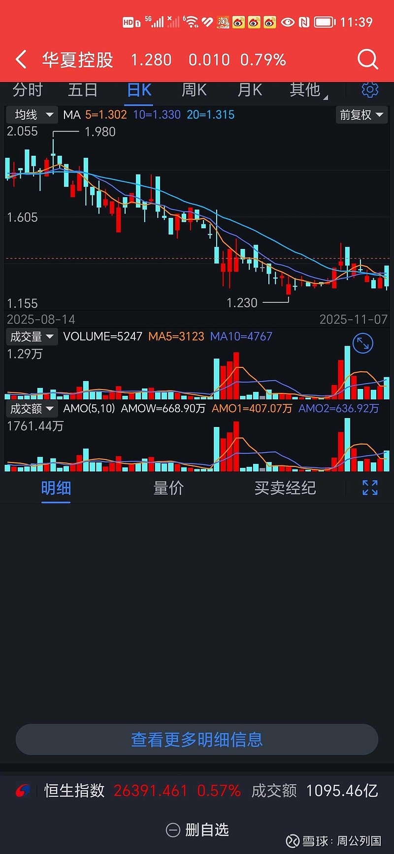2025年11月10号,星期一,截止到上午11点39分,“华夏控股”还没有成交一笔。