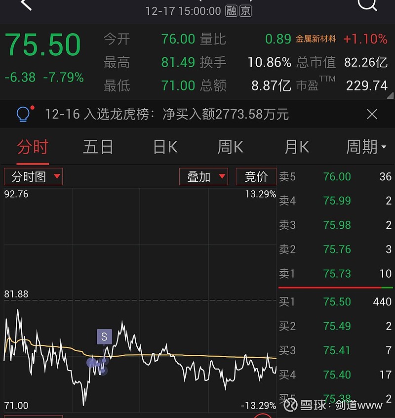 $天力复合(BJ920576)$ 今天全天坐牢,不管是天力还是其他什么商业航天、消费,都坐牢。今天本想做个T减少亏损,奈何水平太差,愣是没T出来,目前空仓。明天最好的走法,开在72左右,5分钟内越快越好快速翻红高走,翻红是介入点。若明天价格打到低于71,则危险大于机会。当然能高开高走则是极好的,但碍于今日整体之颓势,有点奢望了。