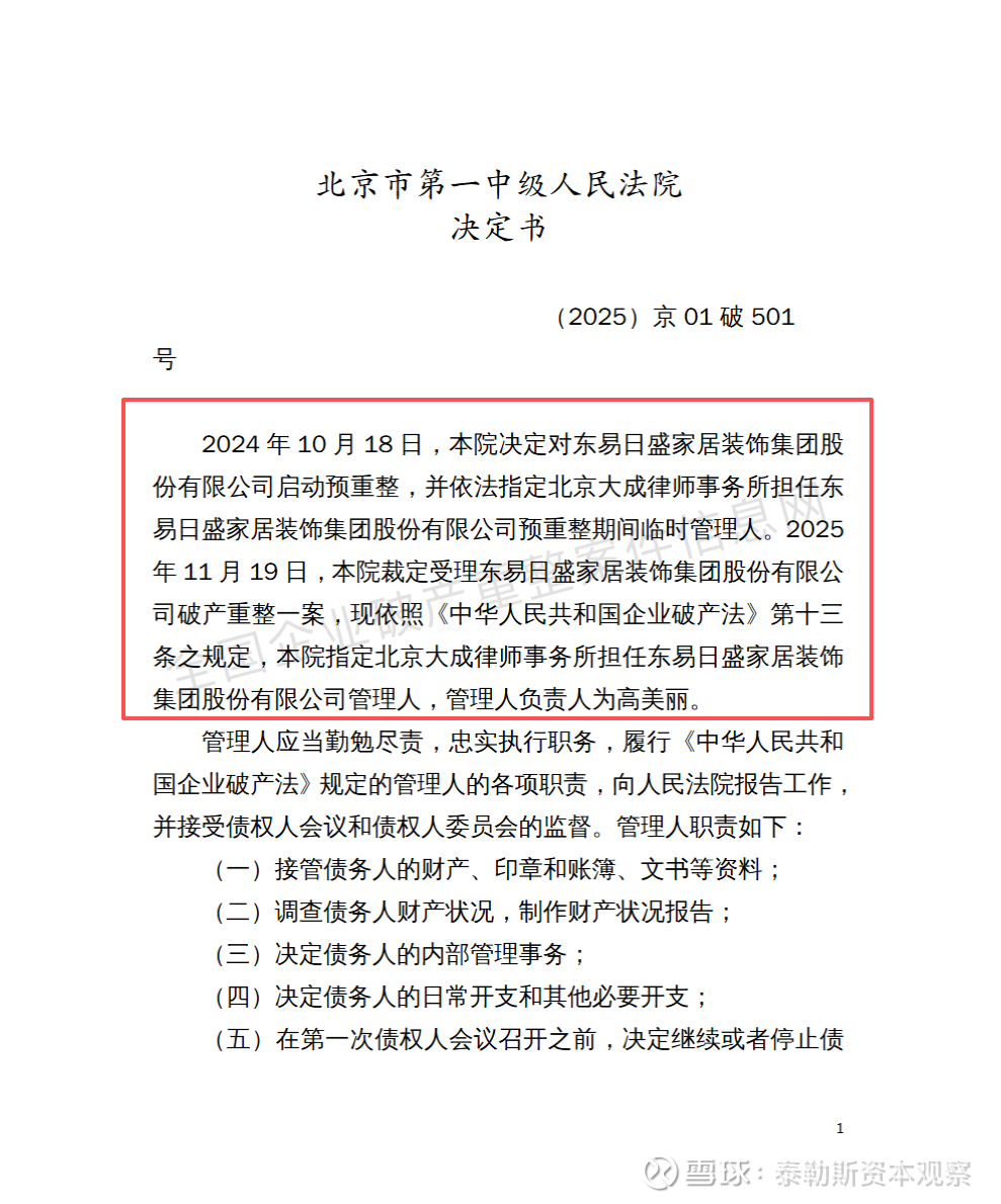 *ST东易是本年度继三圣、中装、宁科、金刚、炼石、名家、景峰、交投、张家界、美谷、新研、聆达之后第十三家拿到重整路条的企业(除了年初的仁东)。也是泰勒斯资本重整“十小龙”中第八家取得重整路条的上市公司。