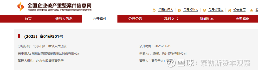 2025年11月19日全国企业破产重整案件信息网出现*ST东易(SZ002713)破产案件信息,显示已经拿到破产重整路条。