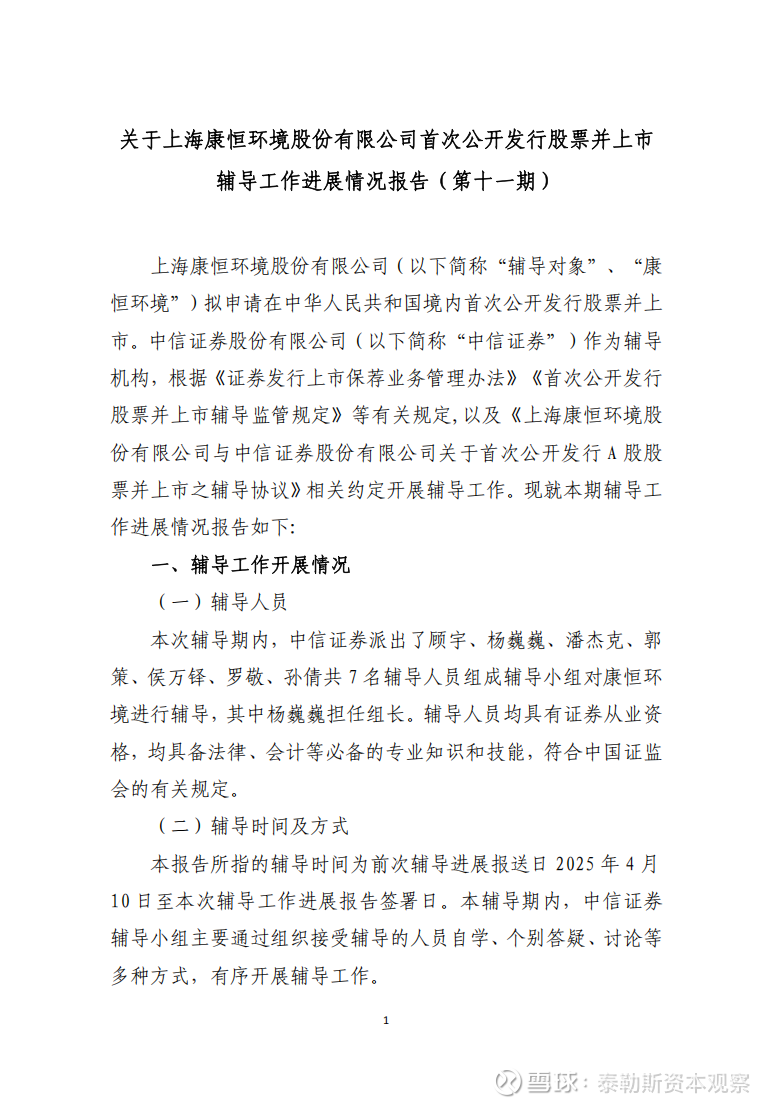 关于上海康恒环境股份有限公司首次公开发行股票并上市辅导工作进展报告(第十一期)