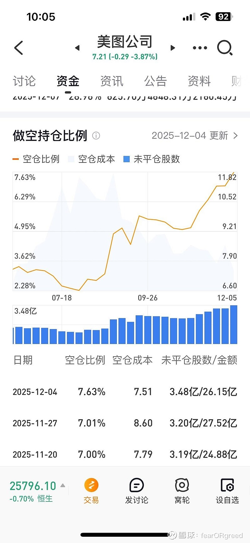 $美图公司(01357)$ 美图作为人工智能应用为数不多的盈利股之一,它的基本面无论2b还是2c都在持续改善中,但股价却几乎腰斩。。。这完全是因为港股的沽空机制在作怪,空方充分利用了半年报的空窗期和大模型迭代带来的恐慌。。。不过这种状况应该不会维持多久了,因为经过近半年的深度洗盘,空方手中累积了3亿多股的筹码,从谁手里买回将是一个问题。。。到时空头回补将会产生逼空奇观,让美图的股价从哪里来回哪里去。。。大家现在需要做的就是静待花开。。。
